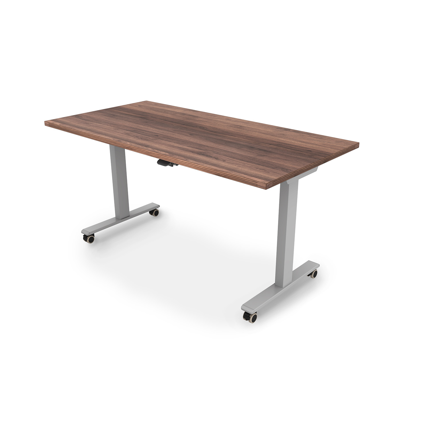 Connect Training Table with Fluted Top Reverse View – Walnut Top, Silver Base