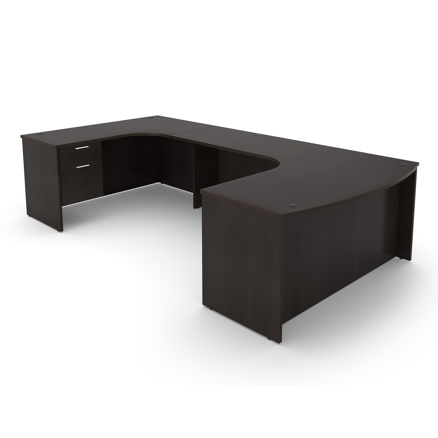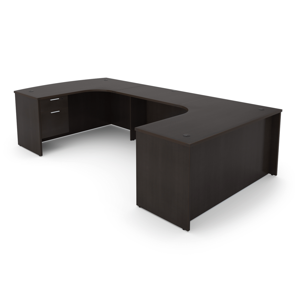 Kai Bow Front Extended Corner U-Shaped Desk Right-Handed with Double Suspended Pedestal Espresso.