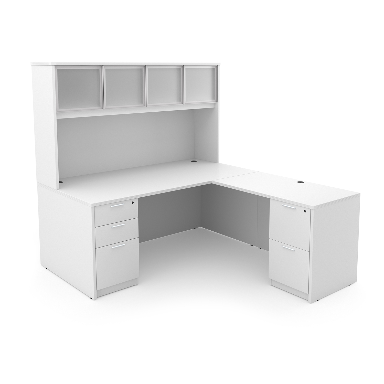 Kai L-Shaped Desk with Double Full Pedestals and Hutch with 4 Glass Doors – Matte White
